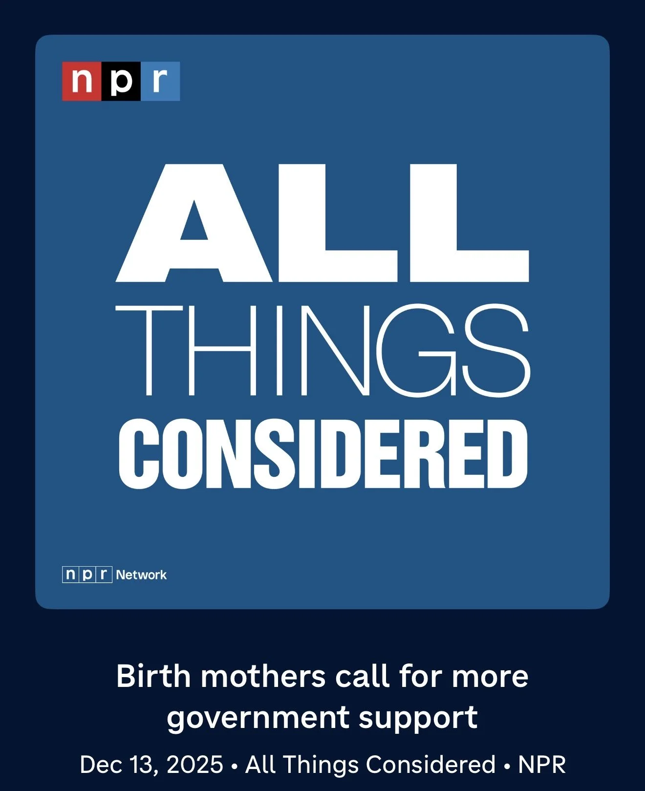 In 2025, I travelled to Atlanta, Georgia to cover the annual Concerned United Birth Parents (CUB) retreat for NPR’s All Things Considered. While on the ground, I interviewed birth mothers about the reasons why they relinquished their infants for adoption.